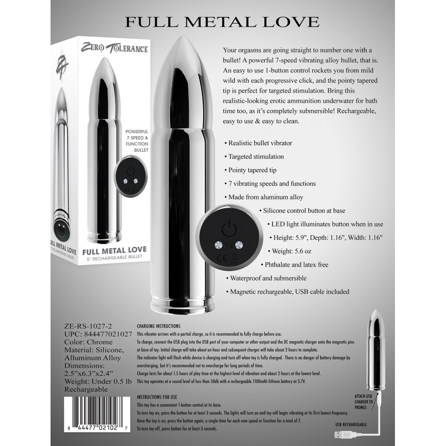 Le vibro en métal FULL METAL LOVE de la marque Zero Tolerance est un sextoy conçu avec une forme de munition.